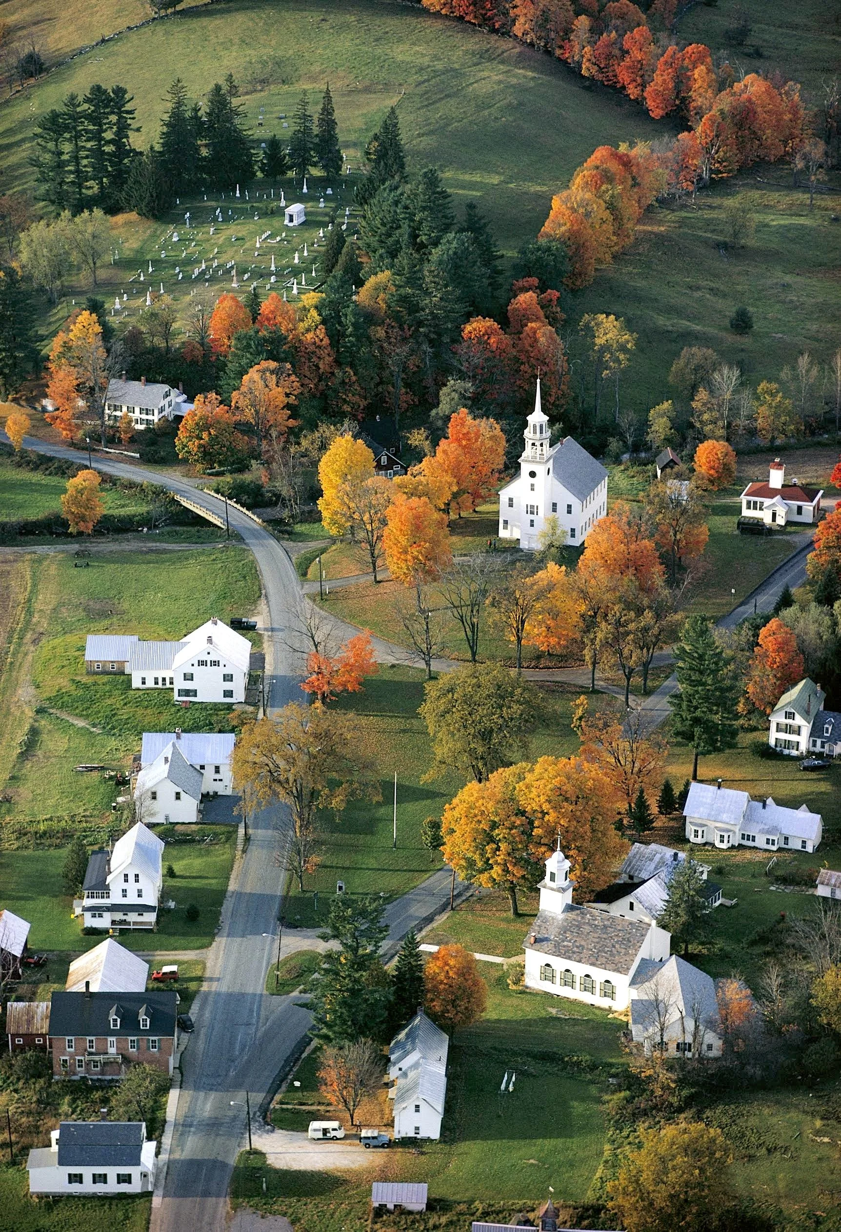 Aerial photo of Strafford Upper Village [cover for the 1974 National Geographic]. Photo credit – Nathan Benn.